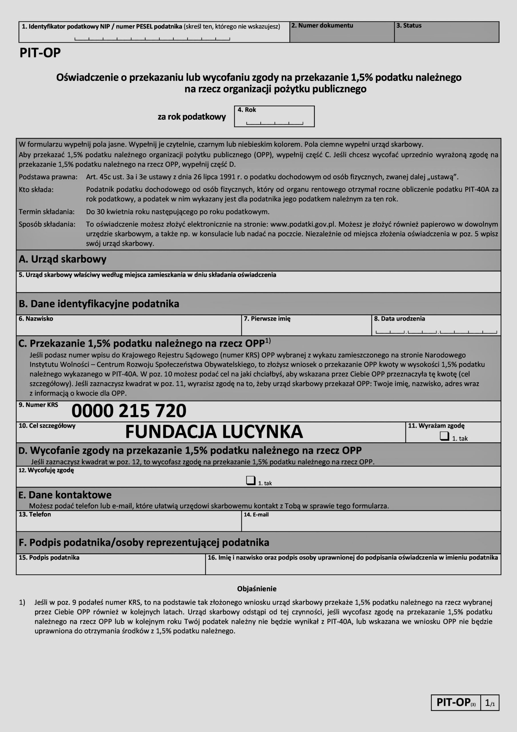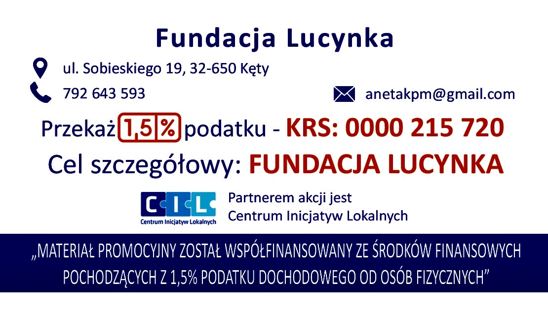 Miło nam poinformować, że już teraz możecie Państwo przekazać nam 1,5% swojego podatku (również na pomoc dla konkretnej osoby)